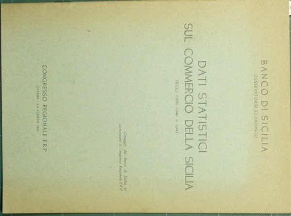 Dati statistici sul commercio della Sicilia negli anni 1946 e 1947 | Rare and modern books | Banco Di Sicilia - Osservatorio Economico