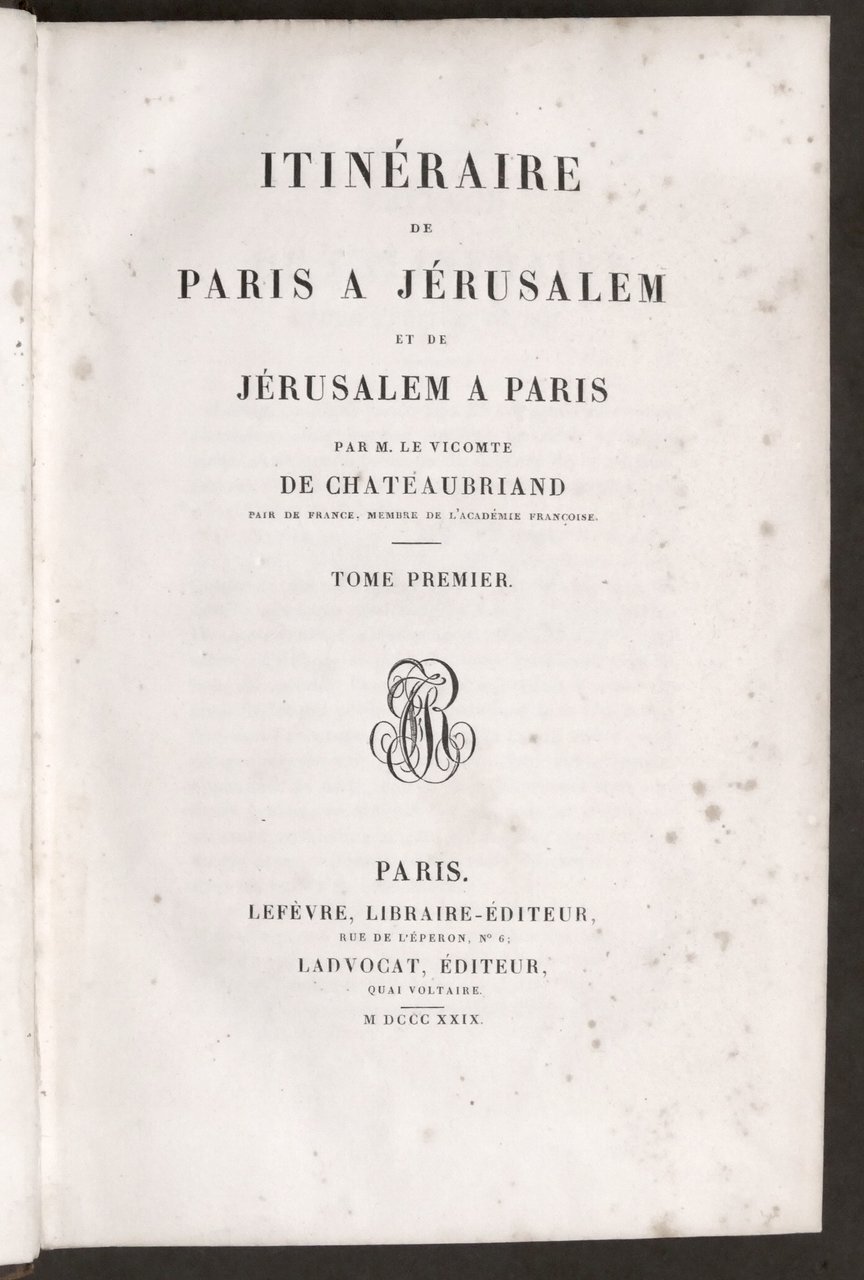 De Chateaubriand - Itinéraire de Paris a Jérusalem et de Jérusalem a Paris 1829 | Rare and modern books |