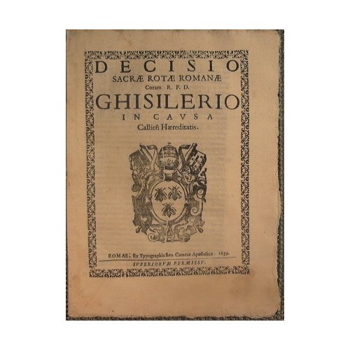 Decisio S. Rotae Romanae Coram R. P. D. Ghisilerio in causa Callien Haereditaris | Rare and modern books | Sacra Romana Rota