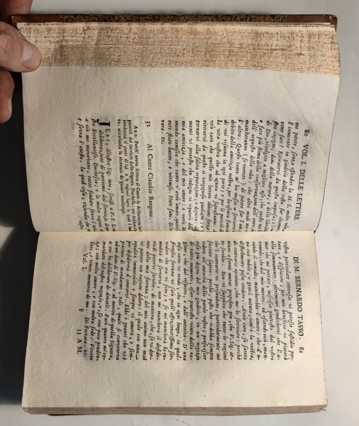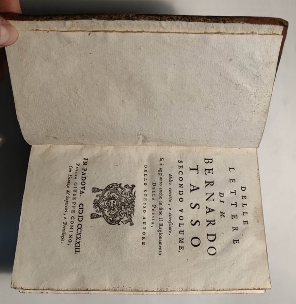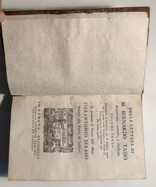 Delle Lettere accresciute, corrette, e illustrate volume primo [- terzo]. Con la vita dell’autore scritta dal Sig. Anton-Federigo Seghezzi, e con la giunta de’ testimoni più notabili, e degl’indici copiosissimi. | Rare and modern books | Tasso Bernardo.