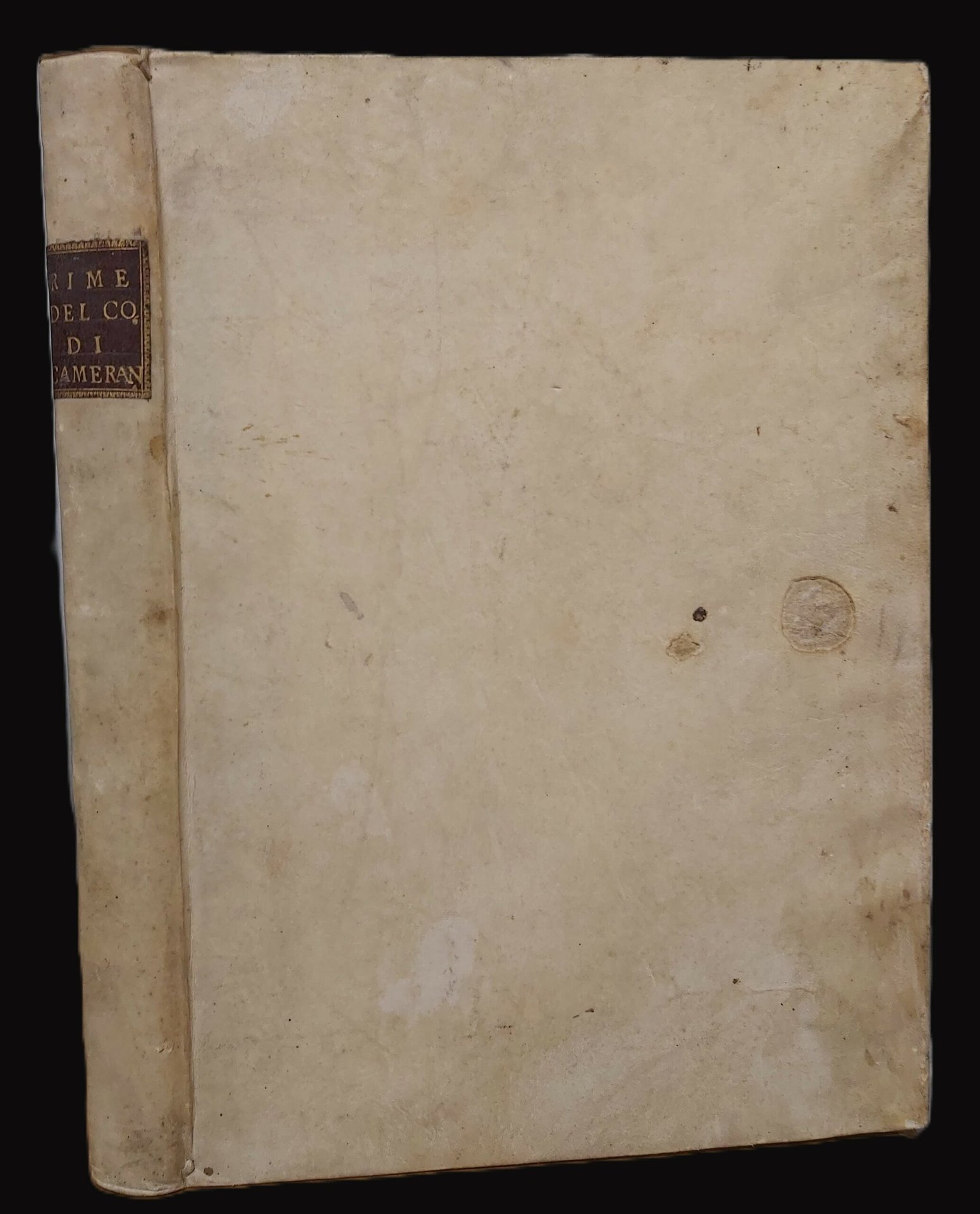 in folio (mm. 406x290), pp. (2), 83, (6); 79; 101, leg. p. perg. settecentesca con tass. e tit. oro al d. Tagli color. Manoscritto datato 1775 comprendente le tre principali opere dell’Asinari (Asti? 1527 - ?) trascritto -come recita l’attestato ms al fine- dal codice LXVI della Pubblica Libreria di S. Marco in Venezia. L’attestato è firmato da A. Maria Zanetti custode della Pubblica Libreria che ne dichiara l’esattezza e “fatta con la dovuta attenzione e fedeltà”. Un’altra nota posta al fine dichiara che il manoscritto è “copiato fedelmente da me Olivo Costa per commissione e con la soprintendenza del N. H. Lorenzo Alessandro Marcello Senator Prestantissimo”. L’incipit del Tancredi reca una correzione alle prime otto righe e altre correzioni sono presenti nelle altre due opere. Belliss. e fresco esempl. [001]