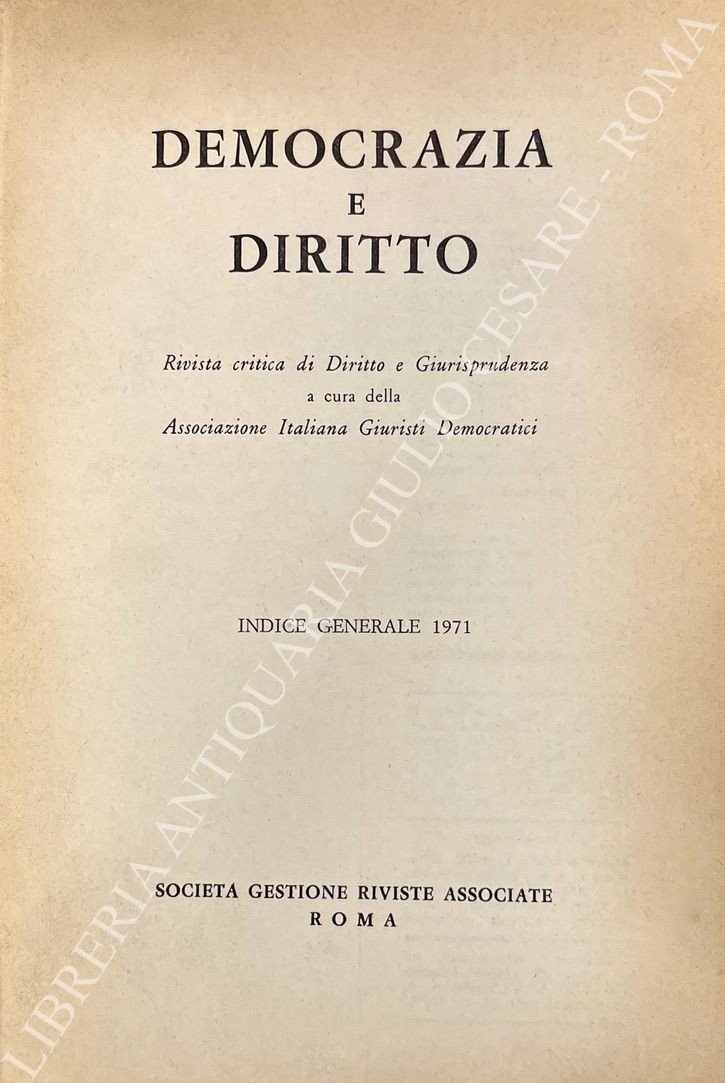 Democrazia e diritto. Rivista critica di Diritto e Giurisprudenza a cura della Associazione Italiana Giuristi Democratici