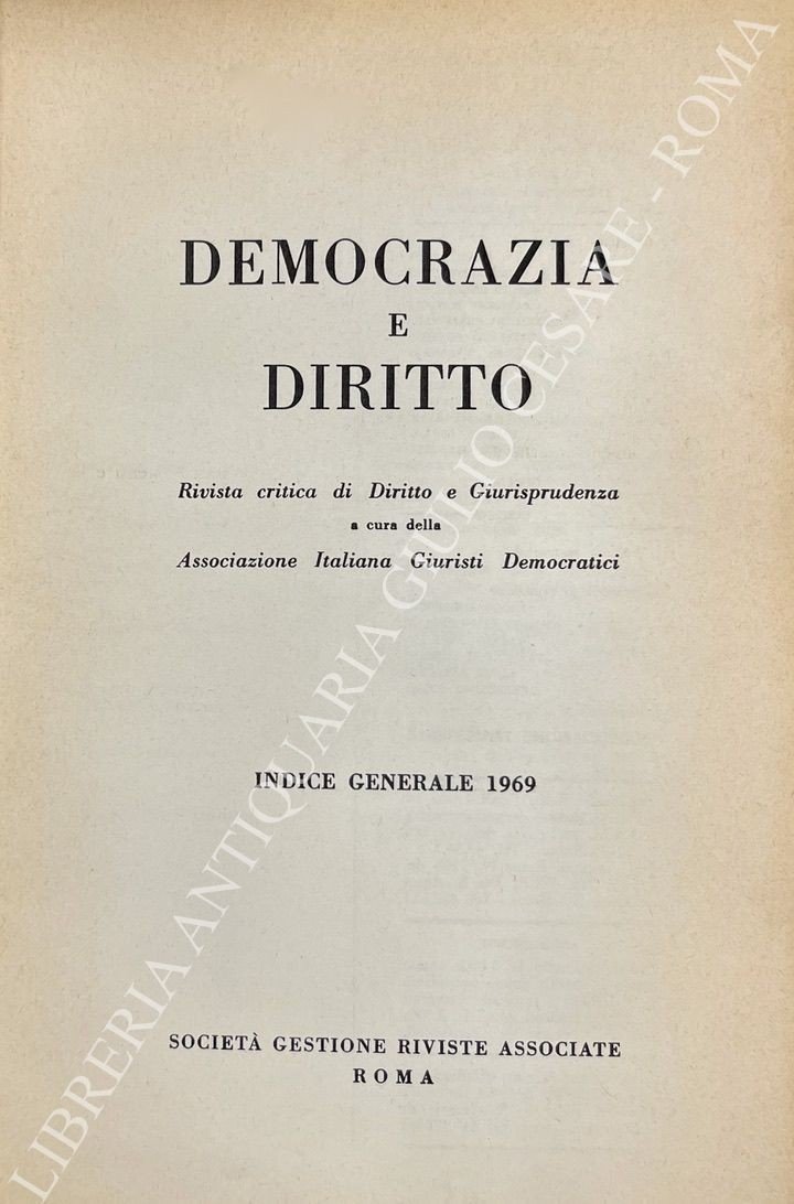 Democrazia e diritto. Rivista critica di Diritto e Giurisprudenza a cura della Associazione Italiana Giuristi Democratici | Rare and modern books | Algardi Z. - Bernardini A. - Bonacci A. - D'Albergo S. - Ferrari, G. - Galoppini A. Et Alii