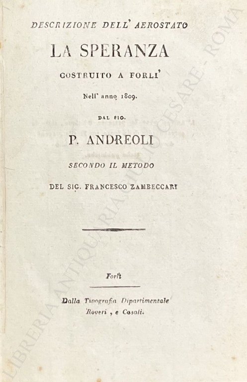 Descrizione dell'aerostato La Speranza costruito a Forlì. Nell'anno 1809 dal Sig. P. Andreoli secondo il metodo del Sig. Francesco Zambeccari