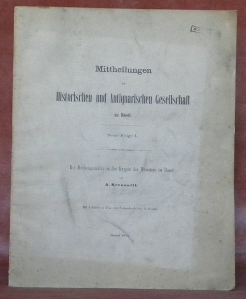 Die Deckengemälde in der Krypta des Münsters zu Basel. Mittheilungen der Historischen und Antiquarischen Gesellschaft zu Basel. Neue Folge I. Mit 7 Tafeln in Ton- und Farbendruck von A. Graeter. | Rare and modern books | Bernoulli, A.