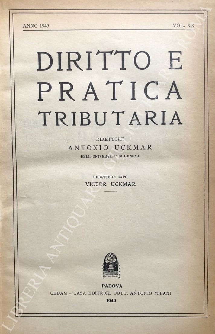 Diritto e Pratica Tributaria. Diretta da Victor Uckmar. Vol. XX - 1949 | Rare and modern books | Autori Vari