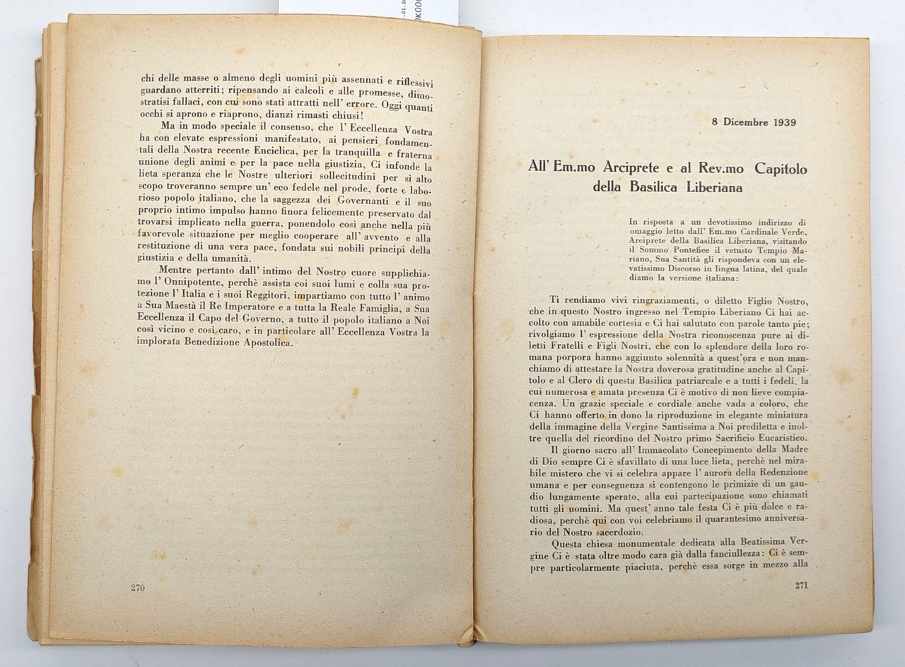 Discorsi del sommo pontefice Pio XII dal 3 marzo 1939 al 5 maggio 1940 | Rare and modern books | Autori Vari