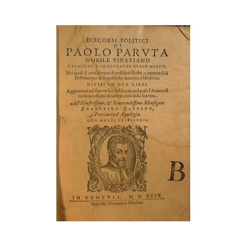 Discorsi politici di Paolo Paruta nobile vinetiano caualiere e procurator di San Marco ne i quali si considerano diuersi fatti illustri, e memorabili di principi, e di repubbliche antiche, e moderne. | Rare and modern books | Paruta Paolo