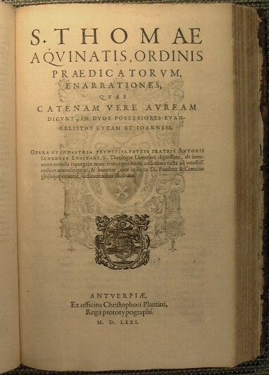 Divi Thomae Aquinatis, Ordinis Praedicatorum, enarrationes, quas Cathenam uere Auream dicunt, In quatuor Evangelia…. Unito a dicunt, in duos posteriores evangelistas lucam et ioannem….