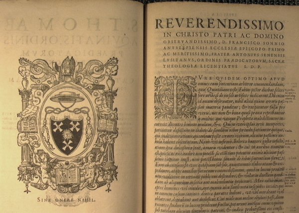 in 4° grande - pp.pp 16nn + 299 + 9nn + 314 + 6nn + 1b - Pelle - Due Volumi in uno - Marca tipografica ai frontespizi, incisioni a piena pagina al recto degli stessi, capilettera. - Testo in latino - Fregi dorati ai piatti , dorso con cinque nervi. Testo su due colonne - Danni alla Legatura, pitto superiore e primo foglio di sguardia staccati. Mancanze al dorso ed al piatto superiore. Ottimo nel resto