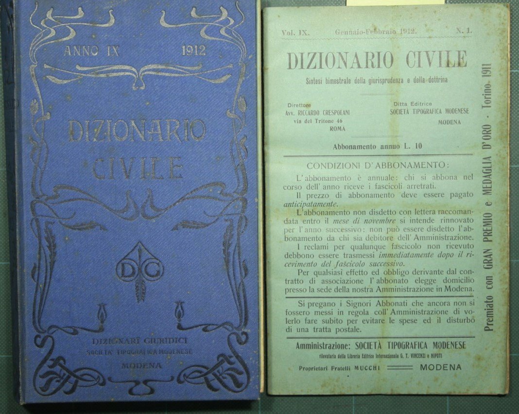 Dizionario civile - Vol. IX, 1912 | Rare and modern books | Crespolani Riccardo