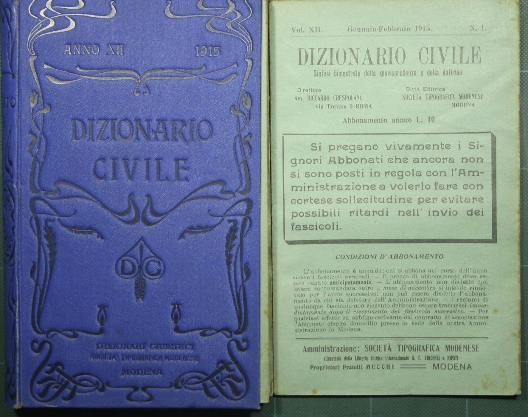 Dizionario civile - Vol. XII, 1915 | Rare and modern books | Crespolani Riccardo