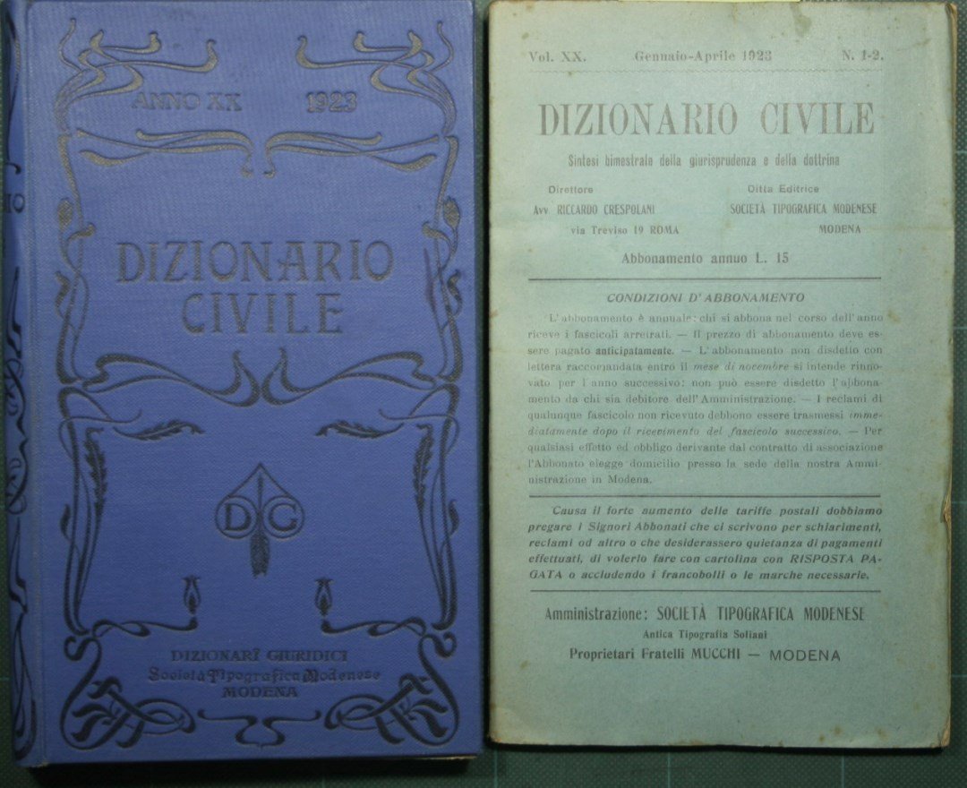 Dizionario civile - Vol. XX, 1923 | Rare and modern books | Crespolani Riccardo