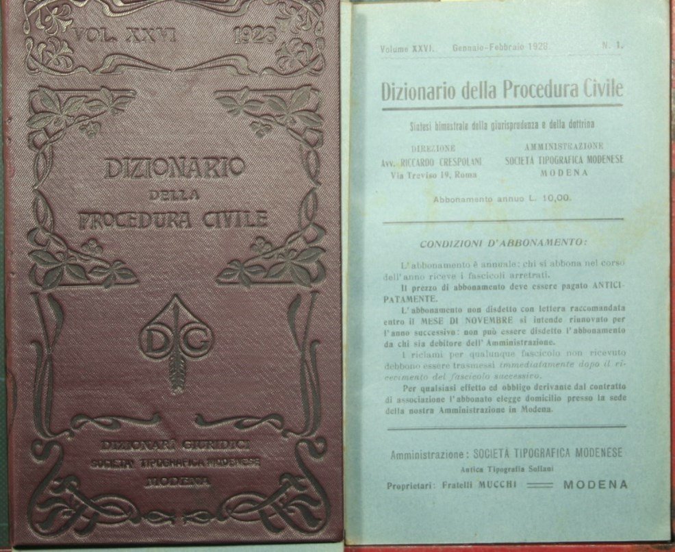 Dizionario della procedura civile - Vol. XXVI, 1928 | Rare and modern books | Crespolani Riccardo