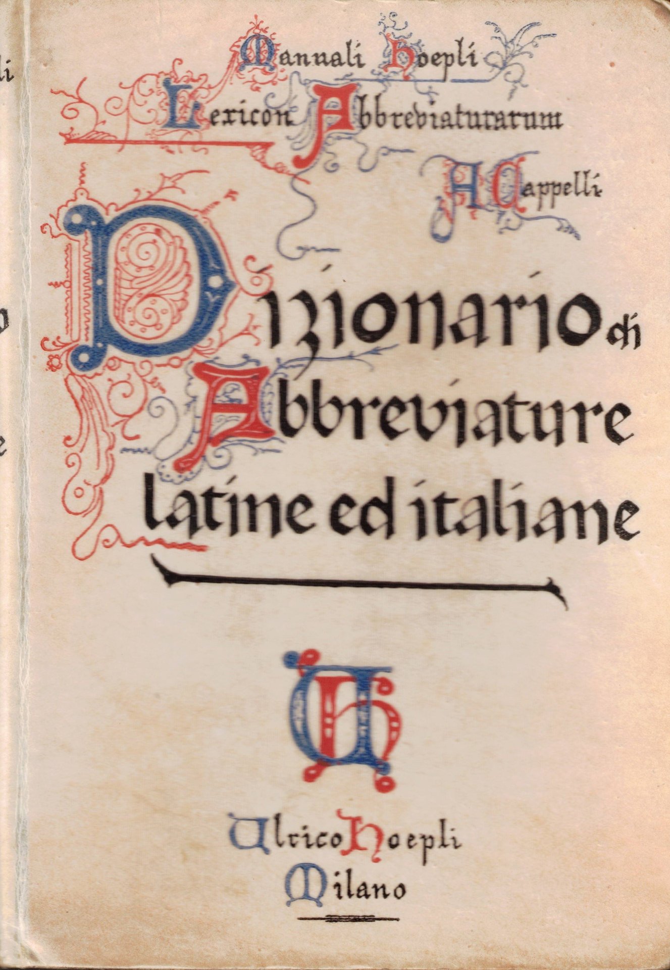DIZIONARIO DI ABBREVIATURE LATINE ED ITALIANE. - Usate nelle carte e codici specialmente del Medio-Evo, riprodotte con oltre 13000 segni incisi. | Rare and modern books | CAPPELLI Adriano