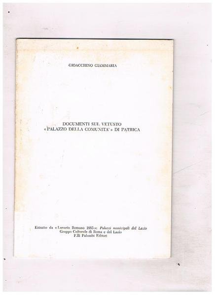 Documenti sul vetusto "Palazzo della comunità" Patrica. Estratto dal Lunario Romano. | Rare and modern books | Giammaria Gioacchimo.