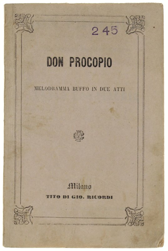DON PROCOPIO. Melodramma buffo in due atti. | Rare and modern books | Cambiaggio Carlo.