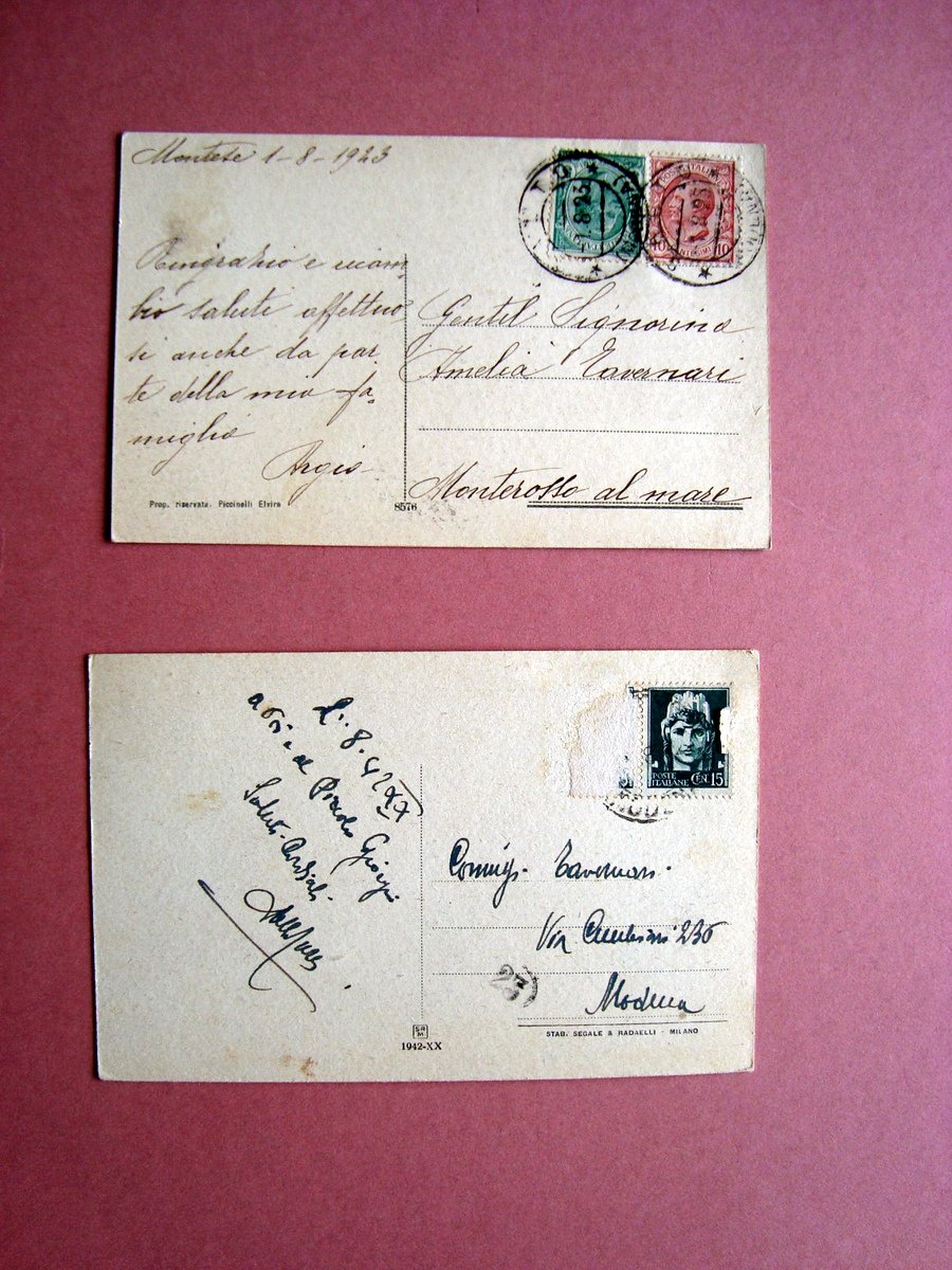 1923-1942; cm 9x14 cad; 2 cart. con ill. fot. b/n. viaggiate.
