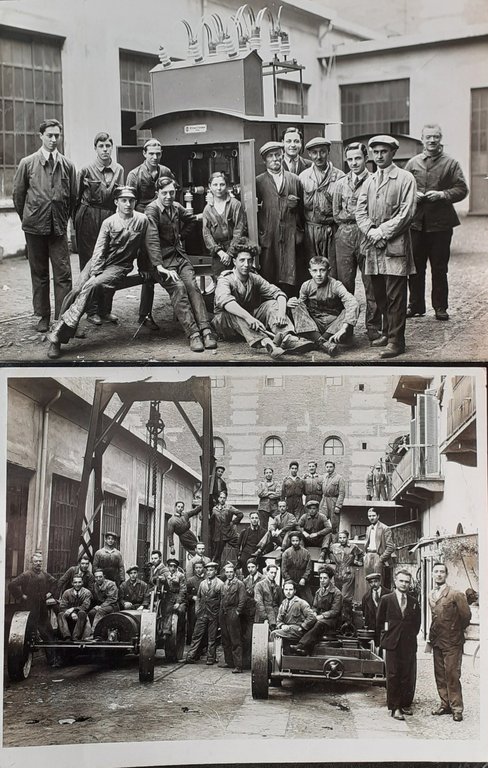 Due fotografie gruppo dipendenti officine Carpegna Torino anni '30