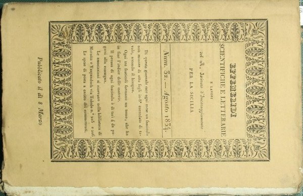 Effemeridi scientifiche e letterarie e lavori del R. Istituto d'incoraggiamento per la Sicilia. N. 32 - Agosto 1834