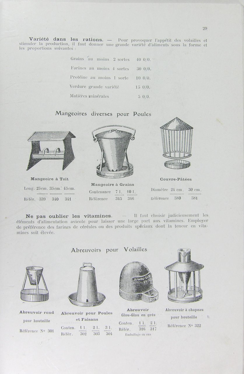 1910 Goujon & Martin, Langeais, 1910. Plaquette in/8 à l’italienne, couverture illustrée bi-colore, illustrations en noir in-texte, 21 pages. Nombreux modèles de couveuses, poulaillers, clapiers, canardières, races de coqs et de lapins.
