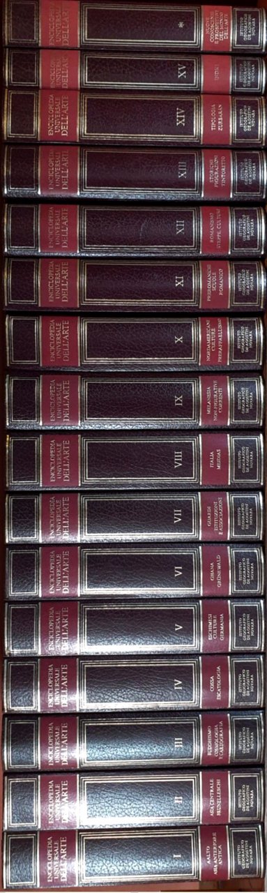 Opera patrocinata dalla Fondazione Giorgio Cini - in 4° - pp.Oltre 1000 a volume - Mezza pelle con fregi in oro al dorso - Sedici volumi - Migliaia di illustrazione a colori ed in bn alla fine di ciascun volume - L'opera è composta da 15 volumi + il supplemento Nuove conoscenze e prospettive del mondo dell'arte