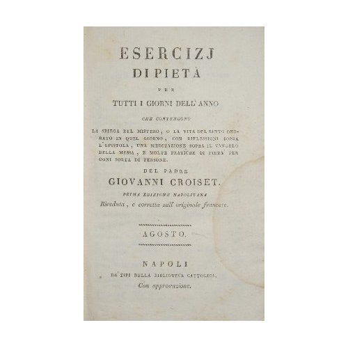 Esercizj di pietà per tutti i giorni dell'anno - Agosto | Rare and modern books | Croiset Giovanni