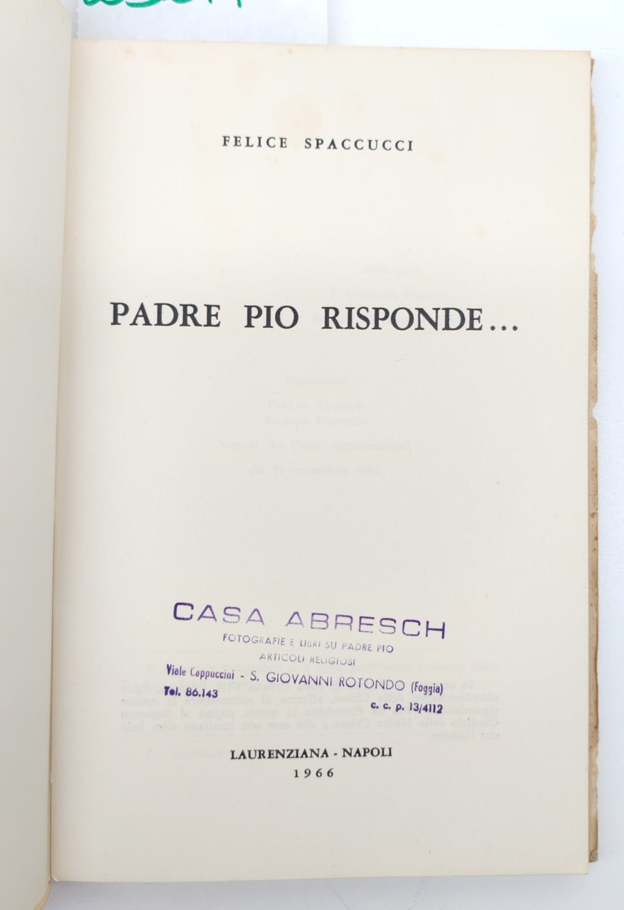 Felice Spaccucci Padre Pio risponde Laurenziana Napoli 1966 | Rare and modern books | Felice Spaccucci