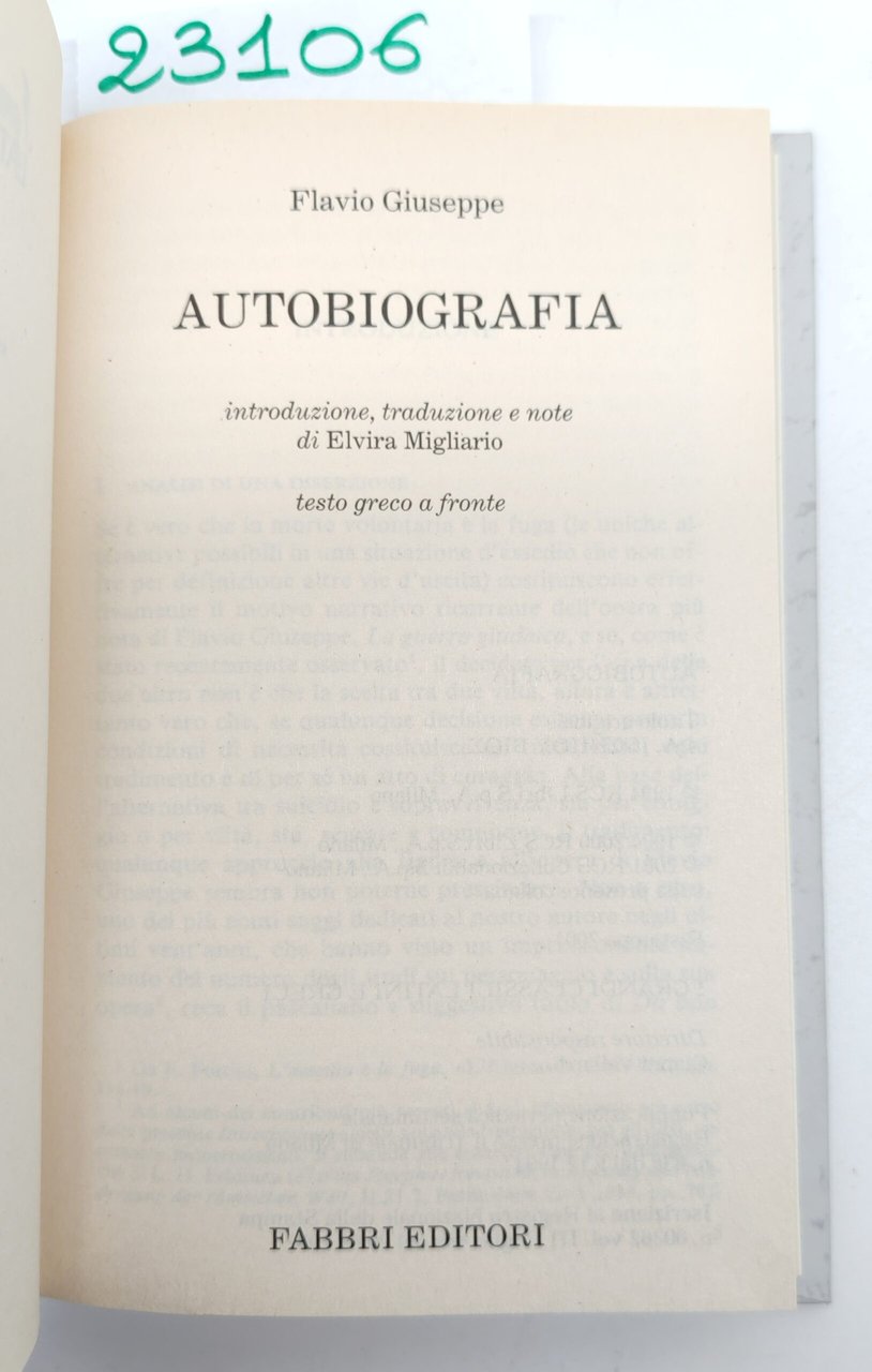 Flavio Giuseppe Autobiografia Fabbri ristampa 2001