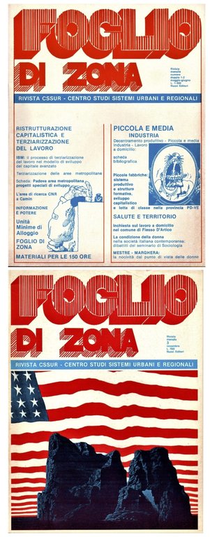 Rivista teorica incentrata principalmente sulla terziarizzazione del lavoro, sulla relazione tra informazione e potere, sulle lotte tra capitale e lavoro in Veneto. Fecero parte del collettivo redazionale: Lucio Barizza, Andrea Battinelli, Giacomo Cadore, Carlo De Poi, Luigi Fabbris, Carlo Formenti, Mariolina Panarese, Alberto Pizzati, Gianni Pizzati, Silvio Scannagatta, Claudio Schiavon, Riccardo Tamburini e Massimo Tramonte. Legatura editoriale con punti metallici, in entrambi i fascicoli numerose fotografie, tabelle e vignette in B/N nel testo, in ottime condizioni.