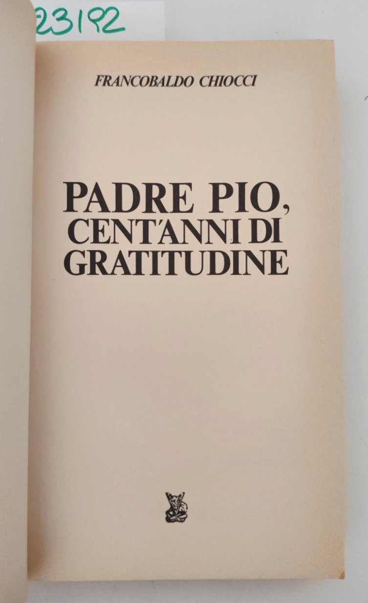 Franco Baldo Chiocci Padre Pio cent'anni di gratitudine Volpe Editore 1987 | Rare and modern books | Franco Baldo Chiocci