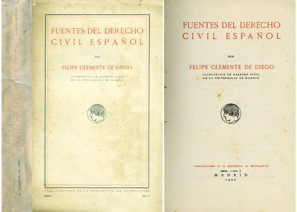 Fuentes del Derecho Civil Español. | Rare and modern books | Clemente De Diego, Felipe (1866-1945).