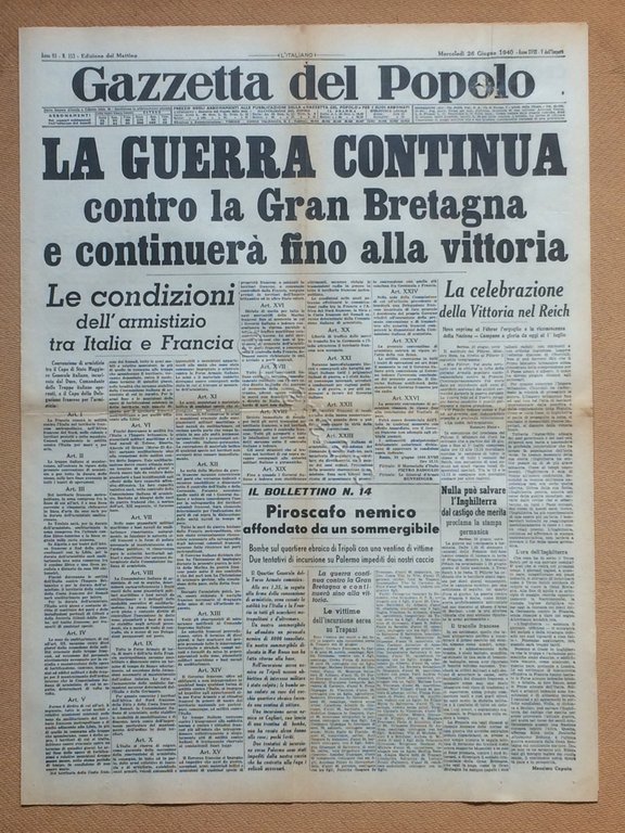 Giornale Gazzetta del Popolo 1940 n. 153 | Rare and modern books |