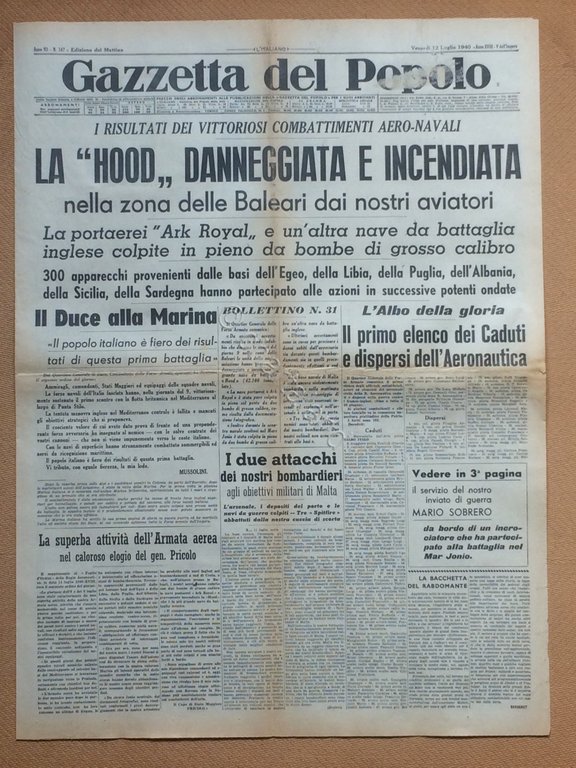 Giornale Gazzetta del Popolo 1940 n. 167 | Rare and modern books |