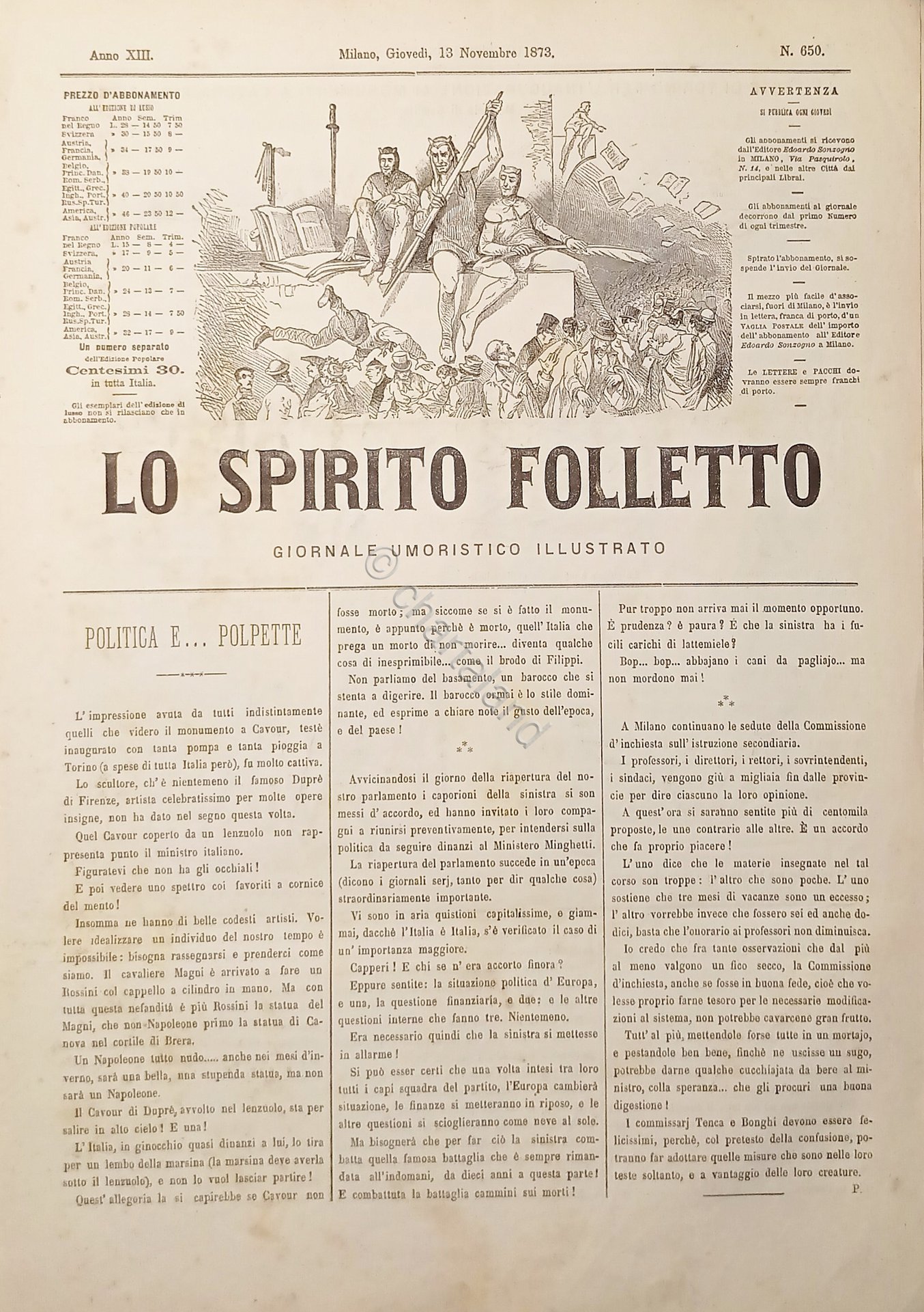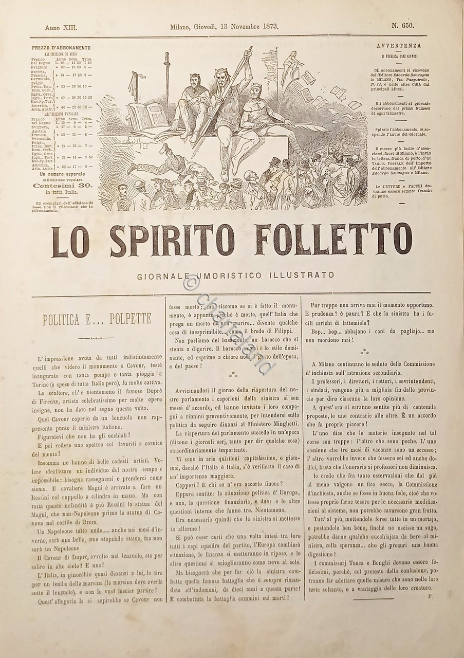 Giornale Umoristico Illustrato - Lo Spirito Folletto N. 650 - 13 Novembre 1873 | Rare and modern books |