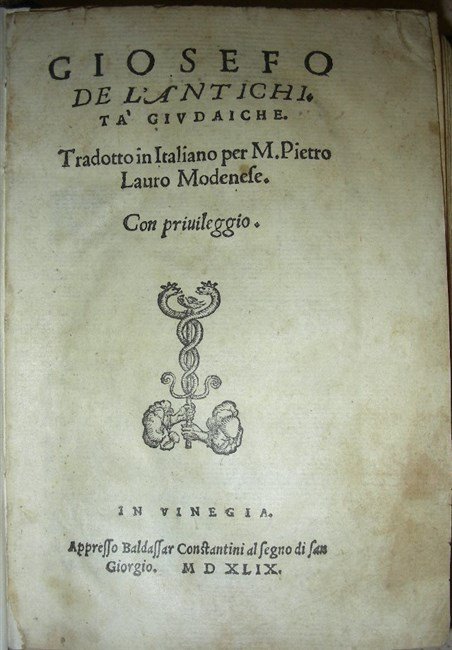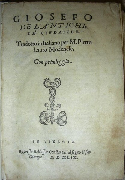 GIOSEFO. De’ l’Antichità Giudaiche. Tradotto in italiano per Pietro Lauro Modenese.