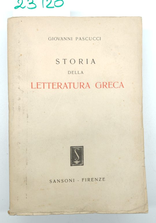 Giovanni Pascucci Storia della letteratura greca Sansoni 1949 | Rare and modern books | Giovanni Pascucci