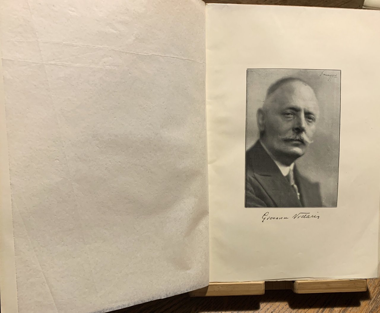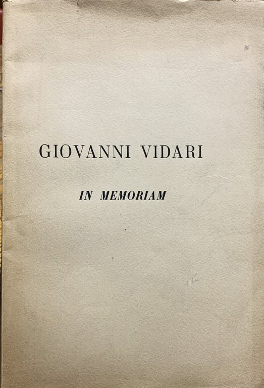 I ed.. IV/ 114/ brossura in cartoncino ruvido avorio con titoli in marrone. In antiporta tavola patinata con ritratto fotografico in b/n del Vidari protetto con carta velina. Stato buono (leggera usura della copertina a margini - copertina con bruniture - pagine leggermente ingiallite). Indice: Biografia; Prof. GioeleSolari della R. Università di Torino - Commemorazioni (Luigi Credaro. R. Accademia dei Lincei, Roma, Seduta 16 dicembre 1934. Lettura del socio nazionale on. prof. Luigi Credaro, senatore del Regno - Giovanni Calò. R. Accademia dei Lincei, Roma, Seduta 16 dicembre 1934. Lettura del socio corrispondente on. prof. Giovanni Calò, della R. Università di Firenze - Adolfo Faggi. R. Accademia delle Scienze e R. Università, Torino, 22 gennaio 1934. Lettura del Socio Nazionale Prof. Adolfo Faggi, della R. Università di Torino - Mariano Maresca. R. Istituto Lombardo di Scienze e Lettere, Milano. Adunanza 24 maggio 1934. Lettura del socio corrispondente prof. Mariano Maresca, della R. Università di Pavia - Giuseppe Tarozzi. R. Accademia delle Scienze dell'Istituto di Bologna, 16 maggio 1934. Lettura del Socio effettivo prof. Giuseppe Tarozzi, della R. Università di Bologna - Francesco Orestano. Consiglio centrale "Società filosofica", Roma, maggio 1934. Parole del Presidente S. E. prof. Francesco Orestano, Accademico d'Italia - Piero Vaccari. Società Storica Pavese. Seduta maggio 1934. Parole del Presidente Prof. Pietro Vaccari, della R. Università di Pavia - In Meoria scrissero - 12 aprile 1934-12 aprile 1935 (Dalla rivista "Fides", anno VII, n. 6, aprile 1935, Torino. "In suffragio di Giovanni Vidari" - Dalla rivista "Fides", anno VII, n. 7, maggio 1935, Torino. "La Santa Messa in suffragio di Giovanni Vidari).