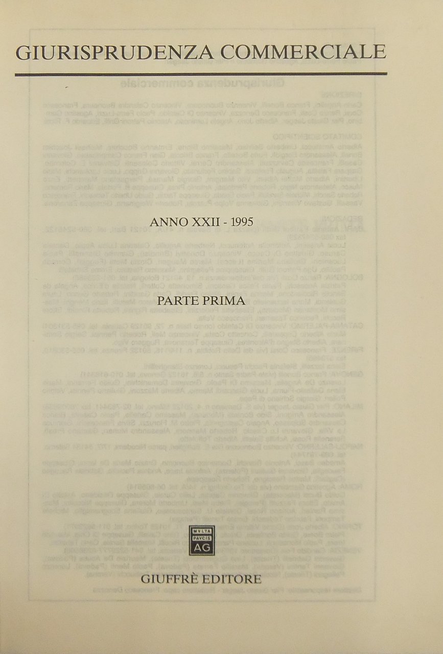 Giurisprudenza Commerciale. Società e fallimento. Anno XXII - 1995 | Rare and modern books | Autori Vari