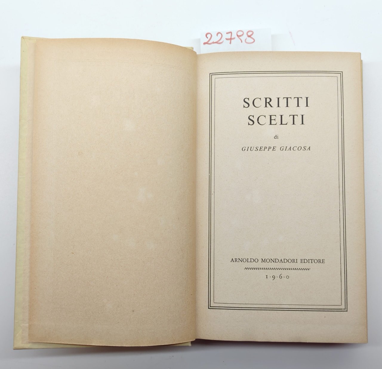 Giuseppe Giacosa Scritti scelti Mondadori 1960 1° edizione | Rare and modern books | Giuseppe Giacosa