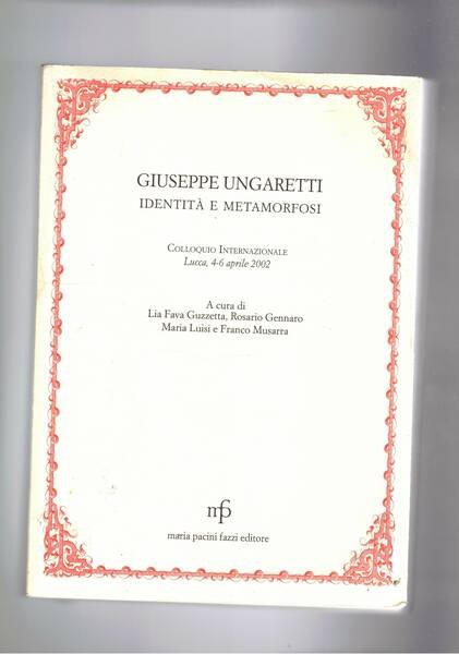 Giuseppe Ungaretti identità e metamorfosi. Colloquio internazionale Lucca 4-6 aprile 2002. | Rare and modern books | Fava Guzzetta L. Gennaro R. Luisi M. E Musarra F. A Cura.