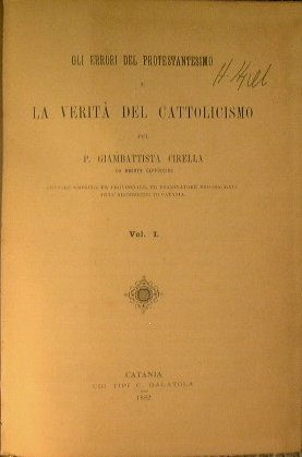 Gli errori del protestantesimo e la verità del cattolicismo pel P. Cirella Gianbattista da Bronte Cappuccino (Vol. I e II)