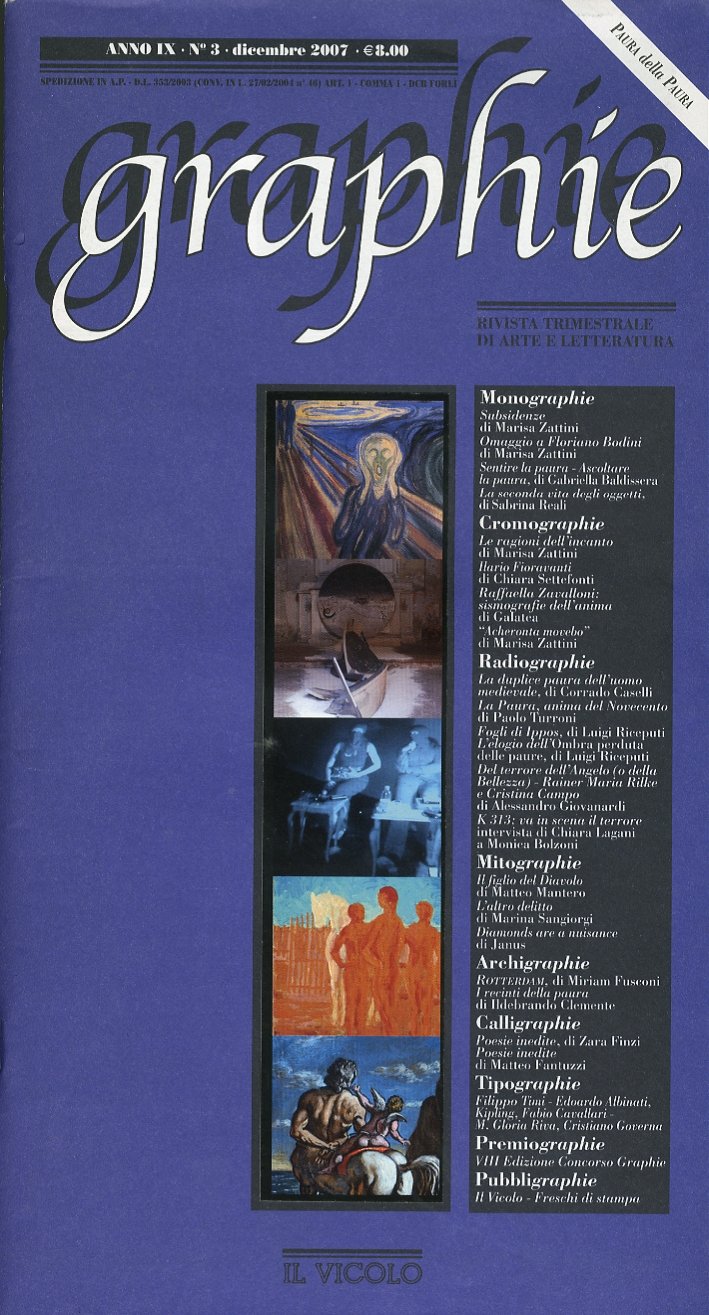 Cesena, 2007; br., pp. 75, ill. b/n e col., tavv., cm 18x33. (Graphie. Rivista Trimestrale di Arte e Letteratura. 3). (Graphìe. 3).