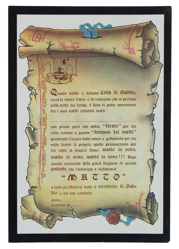 GUBBIO: COME OTTENERE LA PATENTE DI "MATTO" (cartolina nuova) | Rare and modern books |