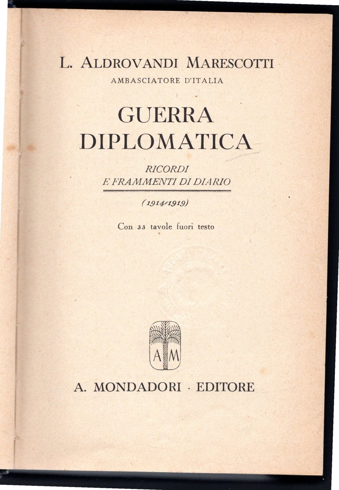 Guerra diplomatica. Ricordi e frammenti di diario (1914-1919) | Rare and modern books | Aldrovandi Marescotti L., Aldrovandi Marescotti L.