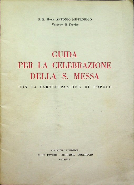 Guida per la celebrazione della S. Messa: con la partecipazione di popolo: a norma della istruzione per la esatta applicazione della costituzione sulla sacra liturgia e delle nuove rubriche. | Rare and modern books | Mistrorigo, Antonio.