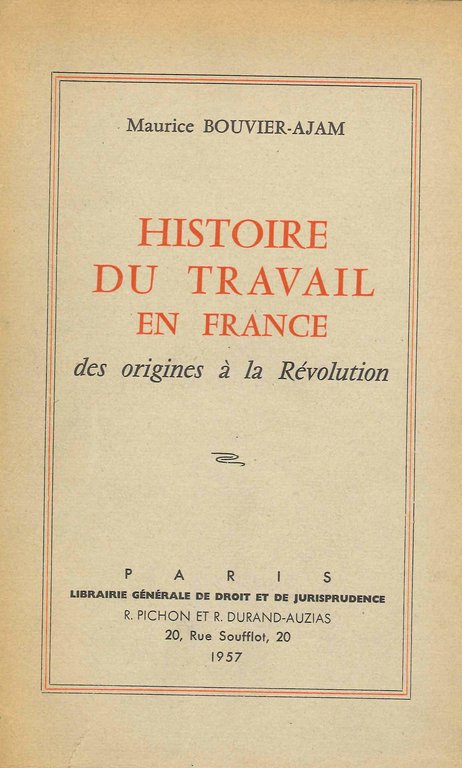 Histoire Du Travail En France. Des Origines À la Révolution | Rare and modern books | Maurice Bouvier-ajam