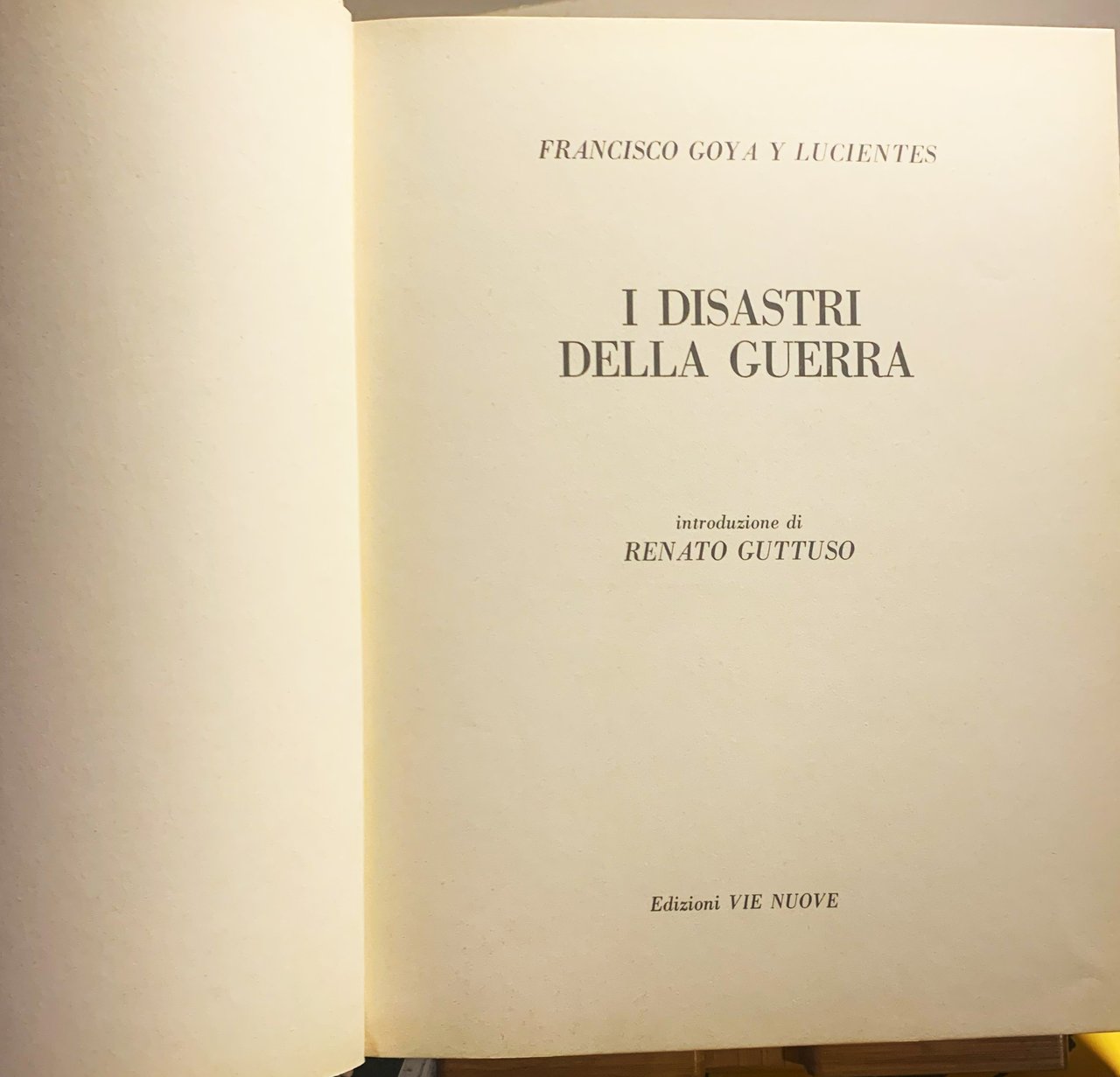 Edizione fuori commercio. "Le icisioni di Francisco Goya che vanno sotto il nome di "Los desastres de la guerra", furono raccolte e date per la prima volta alle stampe in volume, a cura della Reale Accademia di San Fernando a Madrid nell'anno 1863. Fino ad allora, dei rami originali erano state tirate soltanto poche copie che mai furono raggruppate. Successivamente altre edizioni, molte senza utilizzare i rami originali, seguirono quella citata; talune includono la serie completa dei "desastres", altre aggiungono alle 80, alcune tavole più o meno attinenti al soggetto ispiratore di questa "serie". / Le tavole dei "desastres" figurano anche in volumi che presentano l'insieme delle opere grafiche del grande maestro aragonese. Di conseguenza, i "desastres de la guerra" sono abbastanza conosciuti. (. . .) Non abbiamo operato nessuna "contraffazione" tipografica per "forzare" i chiaroscuri, definire più nettamente i contorni, contrastare bianchi e neri, perché venga fuori qualcosa che più si adegui al "gusto" corrente" (dalla Nota editoriale di Amerigo Terenzi, p. 7). In-8, pp. 196, rilegatura cartonata illustrata color oro al primo piatto e titoli color oro al dorso. Con 80 tavole in b/n. Stato buono (piegature al margine inferiore del dorso della copertina dovute a compressione). Indice: Nota editoriale; Amerigo Terenzi - Prefazione alla prima edizione spagnola - Introduzione; Renato Guttuso - Tavole (80 tavole in b/n) - Indice delle 80 tavole.