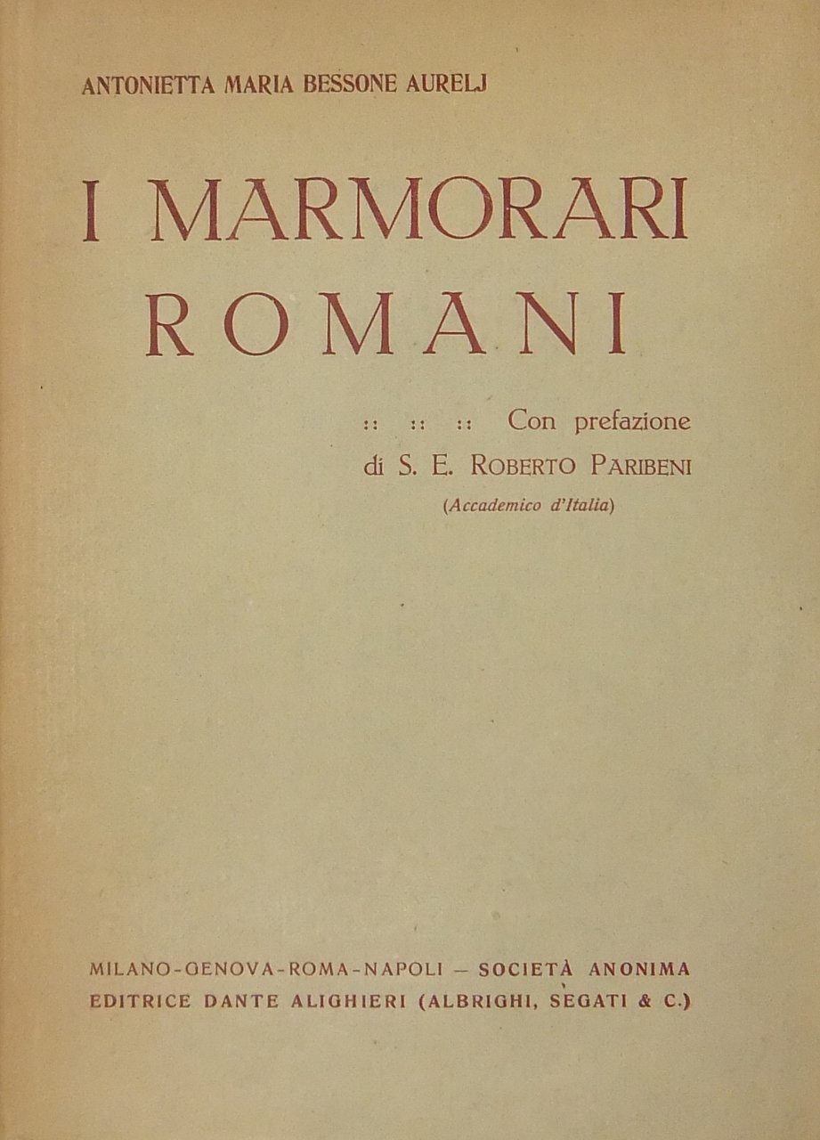 I marmorari romani. Con prefazione di Roberto Paribeni | Rare and modern books | Bessone Aurelj Antonietta Maria