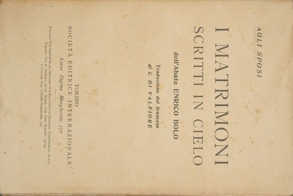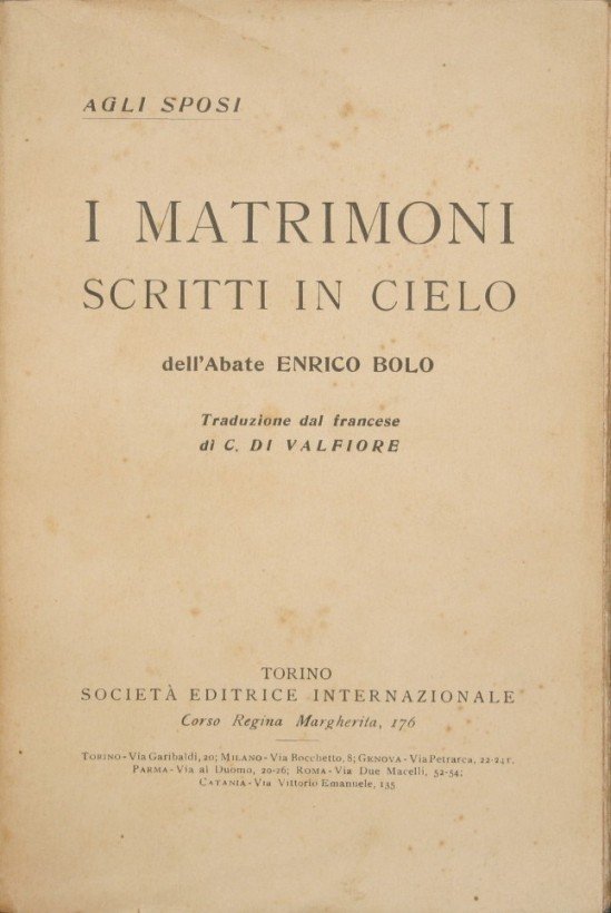 I matrimoni scritti in cielo | Rare and modern books | Bolo Enrico